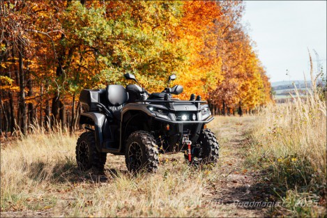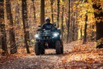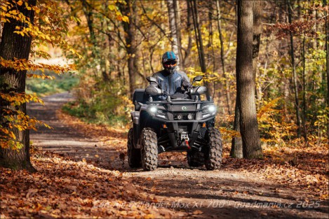My už ale konečně pojďme do české podzimní reality, kde stojí stroj v základní konfiguraci za 373 000,-, my k tomu ale musíme příčíst ještě dalších 52 132,- za doplňky a příslušenství. Romanticky zbarvené stromy Outlanderovi moc sluší a já musím říct, že to je fakt pěkná mašina. A ne jen tím, jak vypadá, ale spíš jak je postavená a co z ní čiší. Ne že by dneska už Číňani plasty neuměli, ba naopak, ale tady jste zkrátka tak nějak o fous blíž k dokonalosti. Můžou za to i strohé tvary plastů, které ale nejsou nudné, spíš účelné. Protože co se vám bude lépe mýt? Čtyřkolka s miliony záhybů a hran, nebo mašina s hladkými plochami? Hezky to je vidět v prostoru nohou, kde vlastně nevidíte motor. Místo toho jsou tu jen hladké, hezky spasované a na omak kvalitní plasty. Nehledě na to, že když budete potřebovat provést nějakou údržbu, povolíte jednu páčky a celý plast jednoduše sundáte. Je znát, že se tady přemýšlelo a to mám rád.