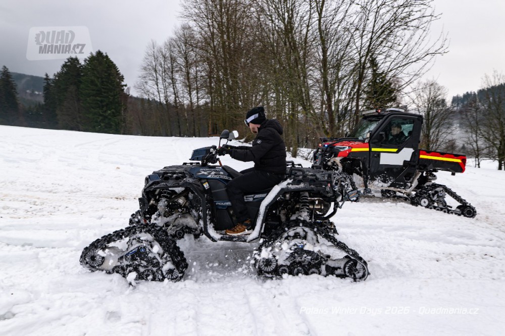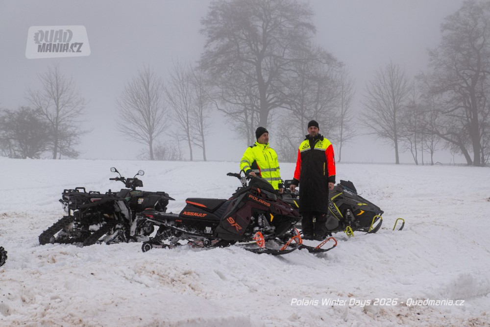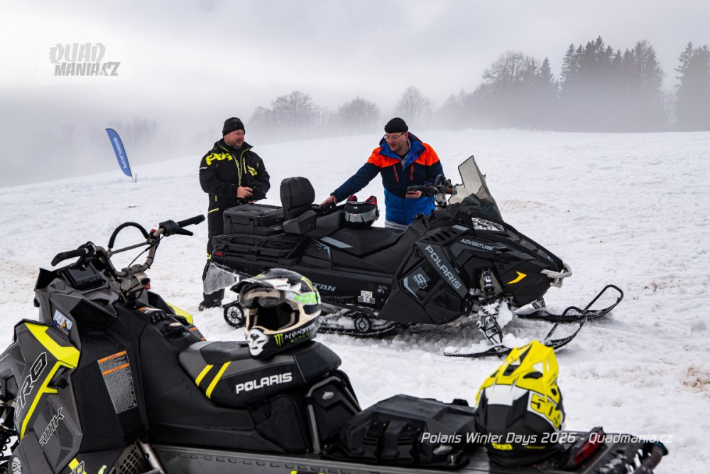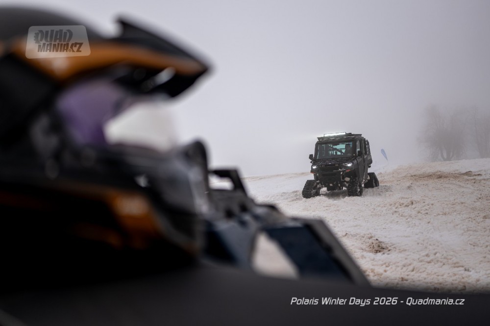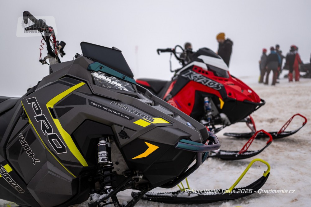 Dnes už tradiční prezentační dny americké značky Polaris se konaly nad obcí Černý Důl v Krkonoších. Přestože jim předcházela lehká obleva a v den, kdy jsme ho navštívili, dokonce padaly z nebe kapky deště, vyzkoušeli jsme zimní stroje a tak trochu porovnali rozdíl mezi čtyřkolkou a sněžným skútrem.