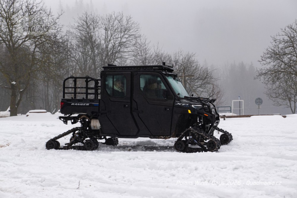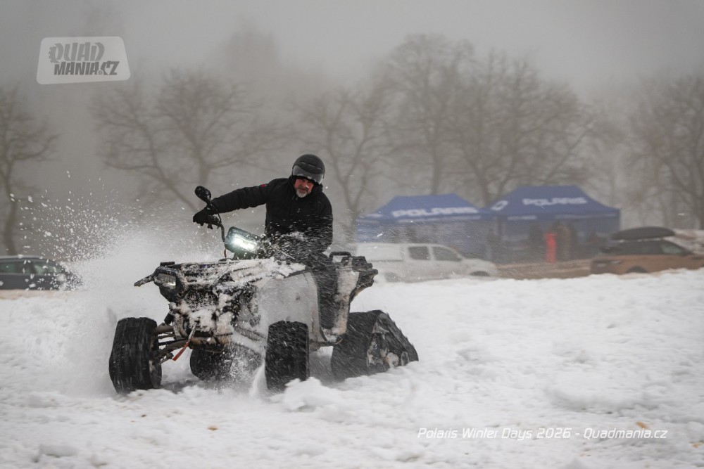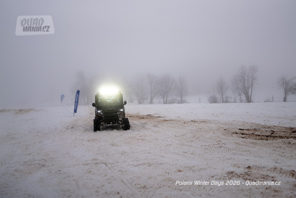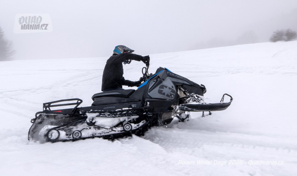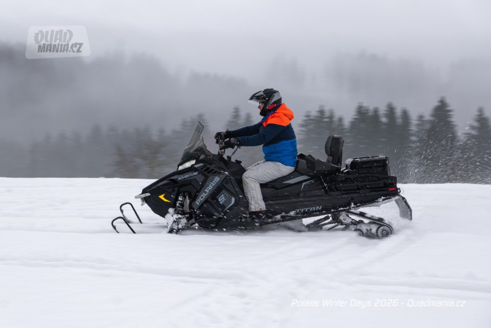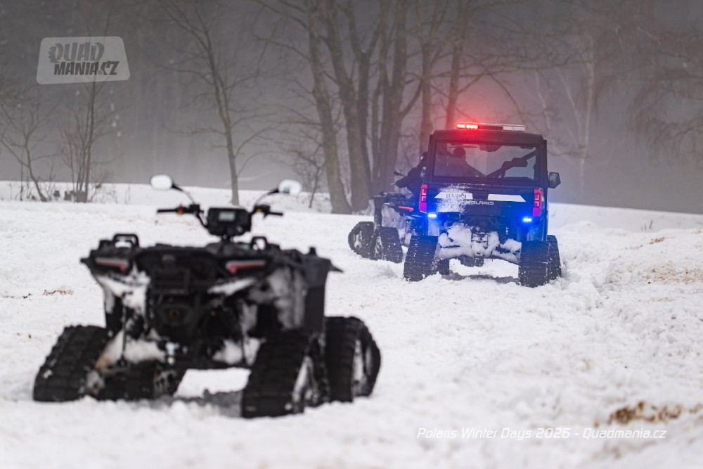 Dnes už tradiční prezentační dny americké značky Polaris se konaly nad obcí Černý Důl v Krkonoších. Přestože jim předcházela lehká obleva a v den, kdy jsme ho navštívili, dokonce padaly z nebe kapky deště, vyzkoušeli jsme zimní stroje a tak trochu porovnali rozdíl mezi čtyřkolkou a sněžným skútrem.